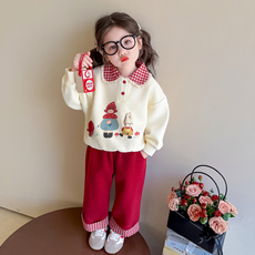 女童翻领格子卡通套装秋季2026新款宝宝时髦卫衣阔腿裤休闲两件套