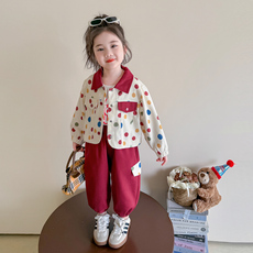 女童波点翻领外套工装裤两件套儿童春季2026新款宝宝洋气时髦套装