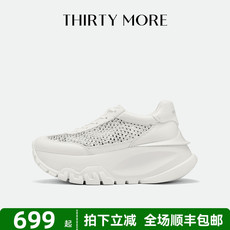 Thirty More厚底系带小白鞋2025夏季新款网钻透气百搭通勤休闲鞋