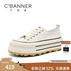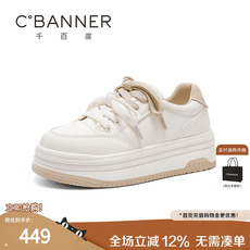 千百度时尚休闲鞋女秋季新款厚底小白鞋系带软底板鞋百搭运动鞋子