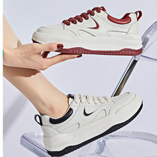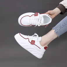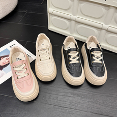少女风休闲系带厚底板鞋女时尚大码圆头拼色柔软舒适透气小白鞋