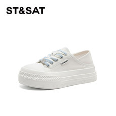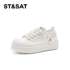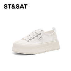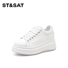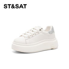 St&Sat/星期六春秋休闲小白鞋圆头系带厚底增高板鞋女SSD1112CEQ