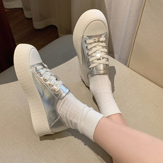 〖WP〗大东厚底小白鞋女鞋秋季新款时尚休闲平底系带高跟圆头0229