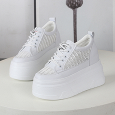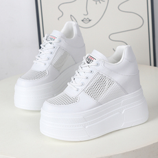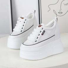 网面透气厚底松糕小白鞋超高跟内增高12CM小个子显瘦系带休闲鞋女