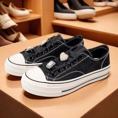 牛货~2025新款钻扣厚底小白鞋女系带轻便运动金属方扣休闲板鞋女