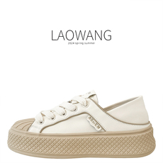 饼干鞋女2025新款百搭真皮厚底休闲小白鞋系带圆头软底休闲板鞋