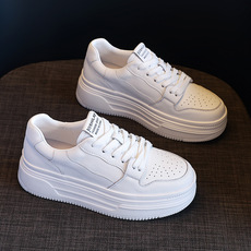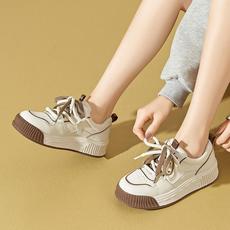 厚底牛皮小白鞋女鞋2025新款百搭运动休闲鞋增高系带轻便系带板鞋