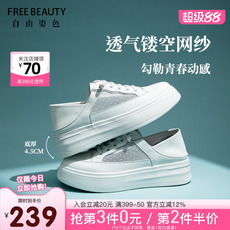 千百度休闲鞋女夏季新款蕾丝网纱透气系带小白鞋厚底增高薄款板鞋