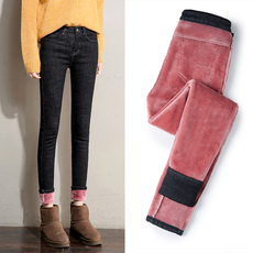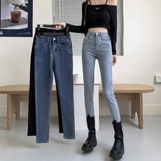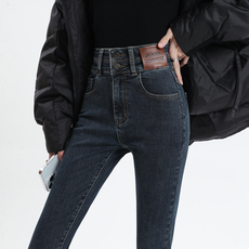弹力】大码加绒加厚牛仔裤女秋冬季保暖高腰小脚新款紧身铅笔长裤