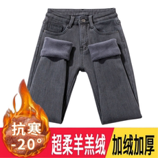 一条过冬!浅色超厚加绒牛仔裤女冬紧身小脚裤羊羔绒高腰保暖长裤