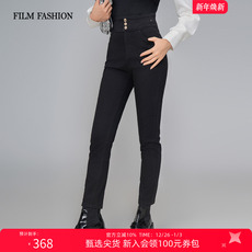 一电影一时装春夏新款高腰黑色牛仔紧身裤小脚裤长裤女款