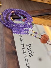 天然紫水晶多圈项链南红平安扣碧玉珠子挂坠新中式复古风格