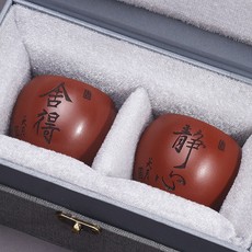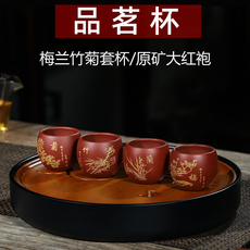 宜兴原矿紫砂杯全手工刻绘舍得静心品茗杯套装大红袍茶杯主人杯