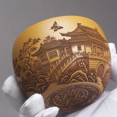 宜兴全手工紫砂茶具 原矿紫玉金砂泥料粉浆刻绘满福主人杯品茗杯