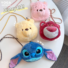 可爱维尼熊草莓熊史迪仔毛绒斜挎包宝宝卡通少女心玩偶链条斜背包