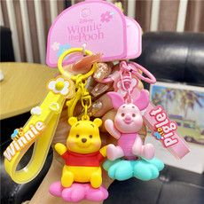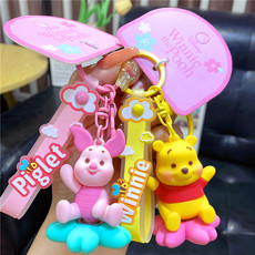 正版迪士尼钥匙扣情侣背包挂件可爱维尼熊小猪汽车钥匙链包包挂饰
