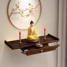 定制佛龛壁挂供奉台实木现代关公财神爷牌位架子墙壁挂式观音神龛