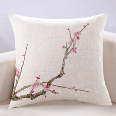 新中式古典简约素雅兰花客厅书房红木沙发抱枕靠垫棉麻混纺大靠背