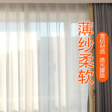 白色薄纱窗帘透光透明雪纺纱帘客厅飘窗绿色挂钩穿杆红色玻璃橱窗
