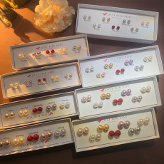 一款两戴红色珍珠爱心耳环小众银针耳钉2024年新款潮气质少女耳饰