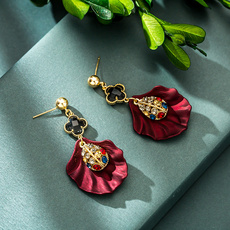 复古港风黑红色独特绝美耳环海边度假风耳饰波西米亚女夸张无耳洞