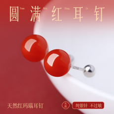 宫里上新朱砂耳钉女纯银红色耳饰高级感玄学旺财耳环妈妈生日礼物