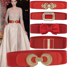 红色腰带女新款装饰连衣裙时尚百搭结婚皮带松紧束腰封本命年专用