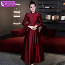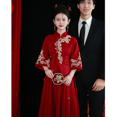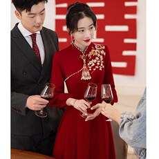 复古风敬酒服新娘旗袍红色订婚礼服连衣裙回门宴结婚长袖冬季年会