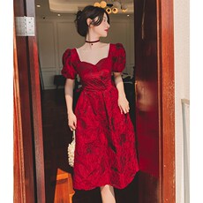 新娘敬酒服平时可穿结婚订婚回门便装连衣裙短款夏季红色晚礼服女