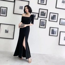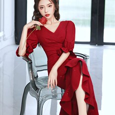 红色礼服连衣裙2025夏季新款女装高档大牌喜庆结婚宴会开叉包臀