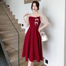 新娘敬酒服红色纱袖日常可穿礼服法式结婚回门便装小个子连衣裙