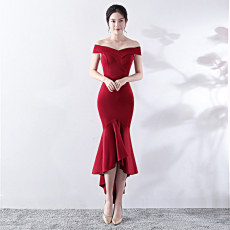 红色鱼尾晚礼服2024新款新娘结婚宴会单肩敬酒服显瘦优雅连衣裙夏