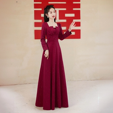 旗袍敬酒服新娘高级感秋冬季结婚礼服裙中式红色订婚连衣裙女长袖