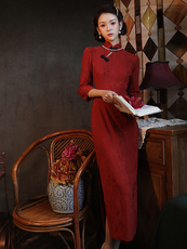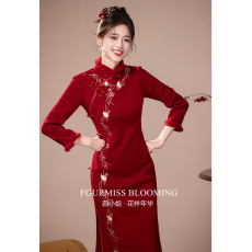 【花样年华】国风旗袍|红色加绒加厚冬装连衣裙刺绣结婚长袖冬天