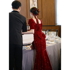 2025新款长裙新娘敬酒服连衣裙女轻奢宴会红色修身鱼尾结婚晚礼服