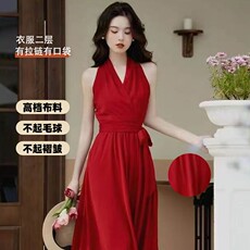 红色晚礼服2025年新款新娘订婚结婚敬酒服小个子吊带连衣裙成人礼