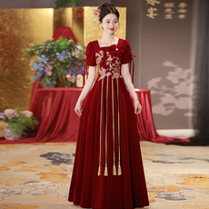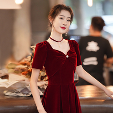 大码敬酒服新娘2025新款结婚订婚宴会连衣裙女红色丝绒气质高级感