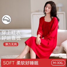 红色睡裙女莫代尔棉七分袖薄款甜美睡衣本命年结婚新婚大码连衣裙