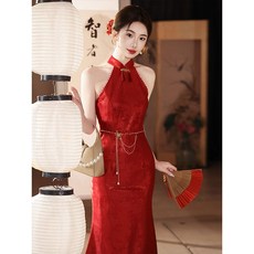 敬酒服新娘2024新款结婚高级感红色鱼尾订婚主持人晚礼服连衣裙女