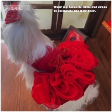 狗狗新年加绒连衣裙马尔济斯约克夏红色礼服裙喜庆高级结婚衣服冬