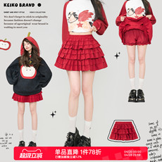 ooh itch痒痒 法式红色碎花半身裙高腰a字印花裙裤(自带安全裤