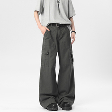 日系复古水洗做旧基础款工装裤男春秋宽松微喇直筒裤纯棉休闲长裤