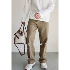 YUXIAN秋冬美式斜纹纯棉微弹直筒裤百搭纯色长裤透气休闲裤男士