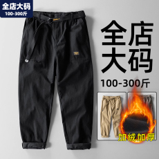 工装裤男冬季保暖加绒加厚纯棉休闲裤加肥加大直筒胖子特大码男装