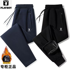 花花公子正品休闲运动裤男士春秋冬加绒加厚宽松纯棉直筒束脚卫裤