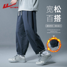 回力纯棉工装加绒裤子男士春秋款宽松运动九分裤男生冬季休闲长裤