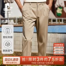 虎都纯棉双褶男士休闲裤深裆宽松爸爸裤秋冬厚款免烫全棉老年人裤