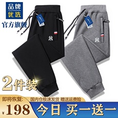 品牌优选休闲裤男士纯棉运动大码加绒宽松九分潮流束脚长裤子男帅