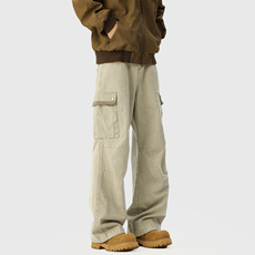 厚款纯棉休闲裤男宽松直筒裤长裤子秋冬季加肥加大码多口袋工装裤