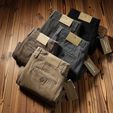 皮尔卡丹纯棉灯芯绒男裤加绒加厚高腰宽松休闲裤秋冬男士条绒长裤
